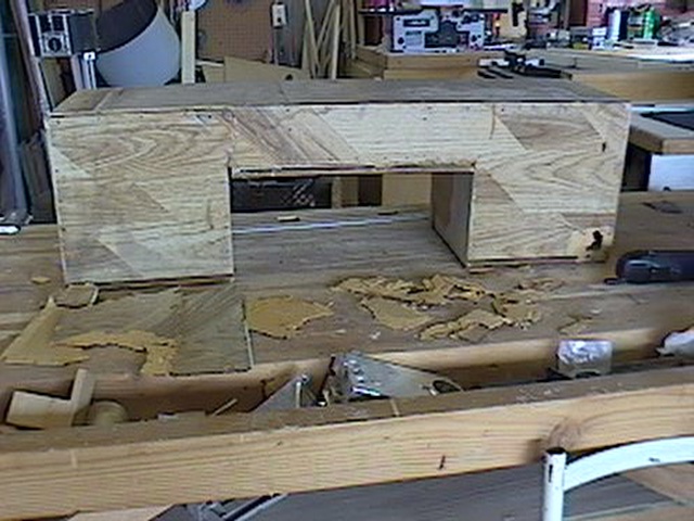 The final assembly is shaped somewhat like an inverted "U". It's made mostly of 3/4" plywood,