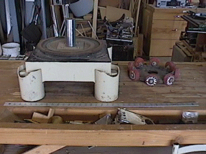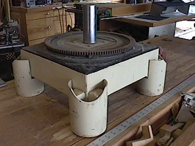 The base will not be refurbished at this time, since it is quite solid and requires none. If I were to do anything to it, I'd make a new one, only larger. EDIT: I did end up rebuilding the base. Mostly, it was to accommodate the redesign of the entire azimuth drive system and yes, I did make it bigger. :-) |